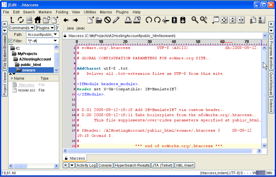 6. Deploying the .htaccess FileHaving edited the .htaccess file on my development machine and checked it into VSS (on the development server), the next steps are all conducted on the development server: