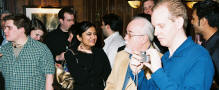 Dave worked on an early version of Microsoft Word and is now in his own business, making it easy for people to compose music. He opened up his Mac and spent a good part of the evening near the living-room fireplace demonstrating what he's developed to make it easy for people to compose music. Although there were many bloggers and techno-geeks in attendance, people were mostly comparing phones. We all admired the OGO model 01+ that was being shown off. |