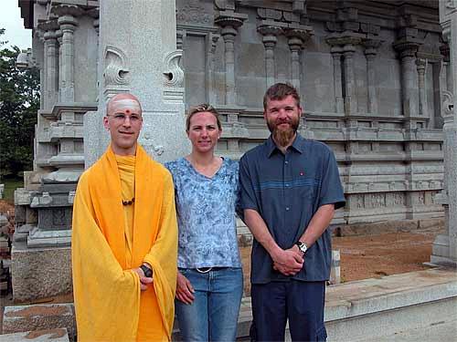 When Vicki learned that the couple would honeymoon on Kaua'i, she said, of course, "You must visit the monastery." She'll say that no matter what Hawaiian island people are visiting. Doug and Kristi did visit, and the trio's photograph in front of the temple construction was published on the monastery site.