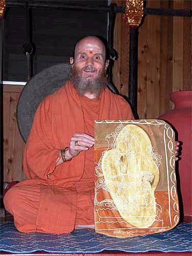 "Our Mother (mother of one of the monks) Vicky Hamilton is a master potter and ceramic artist. She made this lovely image of Lord Ganesha scribe on a tablet of clay on top of another image. It is a beautiful piece and very much conveys the inner presence of Lord Ganesha who is right there on the inside of everything. It was fired at high temperatures and has an extremely hard surface. Thank you Vicky for this beautiful work of art!"